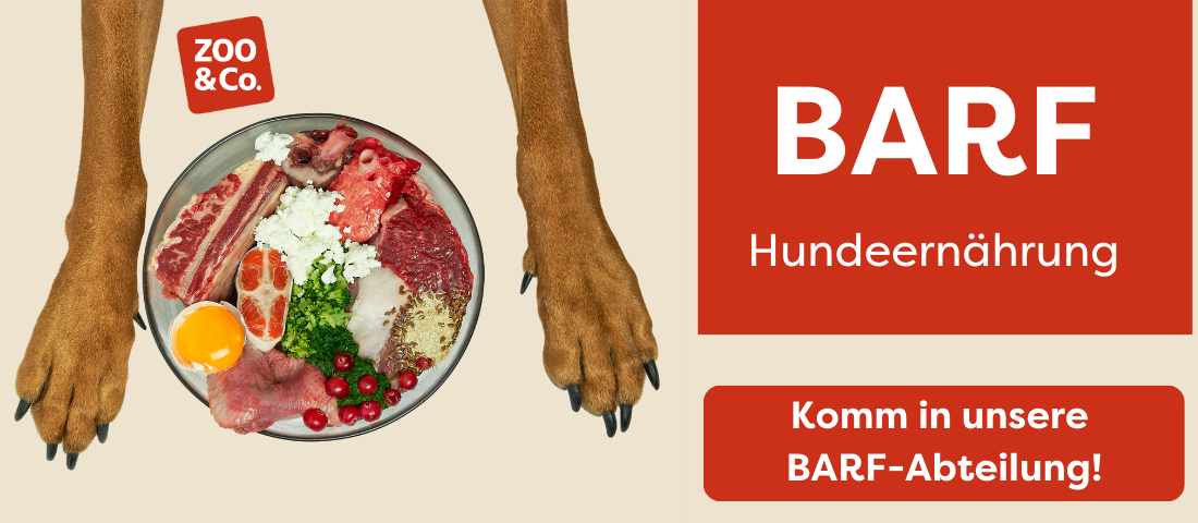 In weiteren Artikeln beschäftigen wir von ZOO & Co. uns noch ausgiebiger mit dem Thema BARF und der artgerechten Fütterungsumstellung. Erfahre jetzt zum Wohle deines Hundes mehr über Rohfütterung mit Fleisch, Obst & Co.