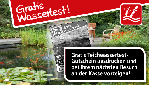 Bitte bringe dazu ca. 250ml Teichwasser in einem sauberen Gefäß oder einer Tüte mit in deinen Zoo&Co Aumüller Fachmarkt. (Bitte ohne Luft).