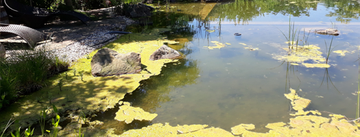 Nehmen die Algen überhand, stören Sie nicht nur den Blick in den Gartenteich. Algenplagen können auch negative Auswirkungen auf die Teichbewohner haben und sind z.B. ein Zeichen für einen Nährstoffüberschuss im Teich.